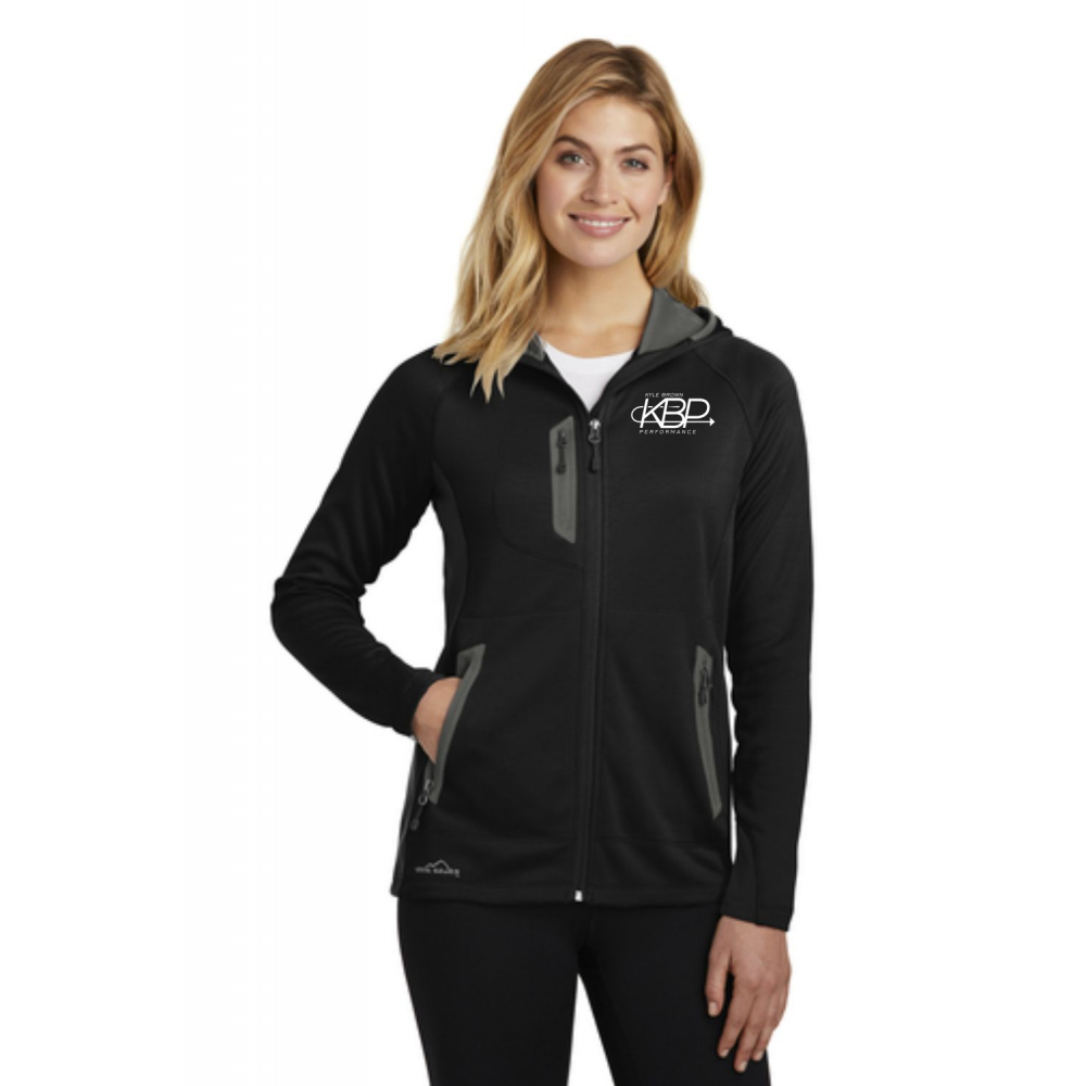 This sporty midweight jacket pairs smooth-faced fleece with stretch side panels for comfort during active adventures.Three-panel hood with contrast lining. Reverse coil zippers, welded contrast zippered pockets. Contrast Eddie Bauer heat transfer logo on right hem. Made of 12.8-ounce, 100% polyester diamond dobby fleece with an anti-pill finish inside. 88/12 poly/spandex side panels.